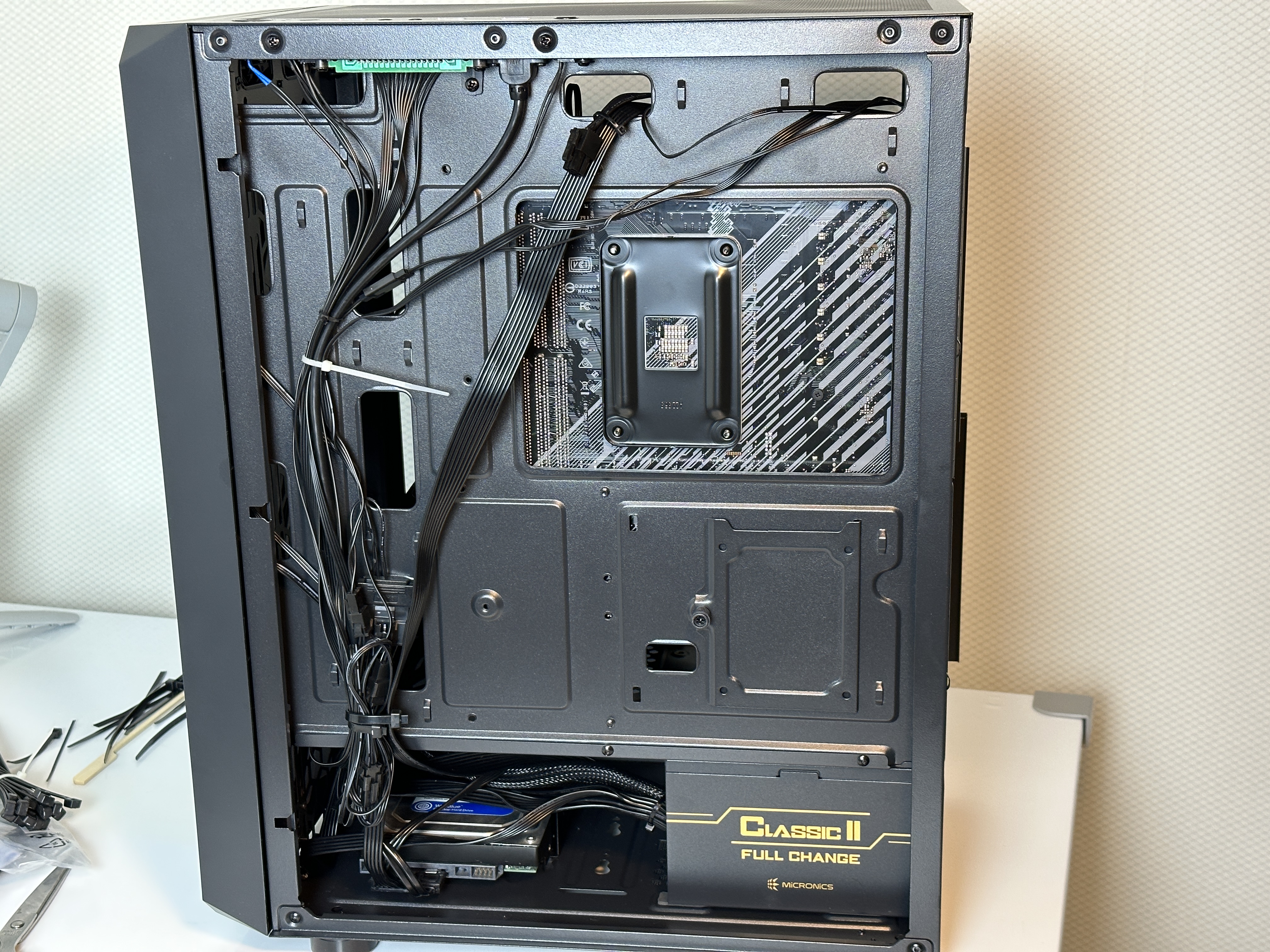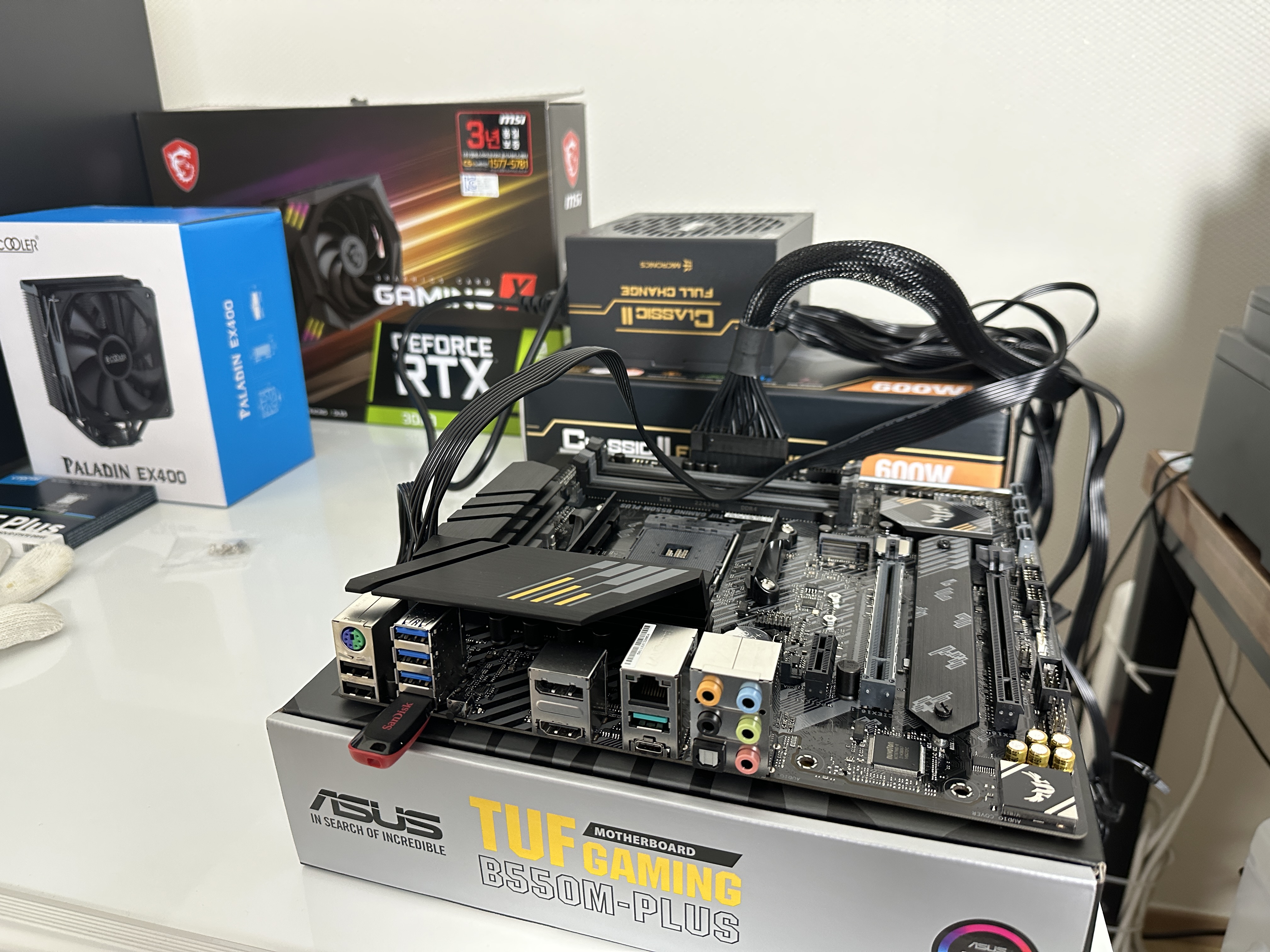 파워는 저도 잘 몰라서 안전하게 추천해 주는 Clsssic Ⅱ 풀체인지 600W로 구입했습니다. 여기까지 제품들을 결합하고, 달아주기만 하면 되는 거였는데요. 생각보다 너무 쉬웠어요. 기계 조립하는 걸 좋아해서 그런지 너무 별거 아닌 거 같이 느껴지더라고요. 작동이 될까 걱정도 했지만 천천히 하나하나 유튜브 선생님의 설명을 들으면서 해보니까 그리 어렵지 않았습니다.