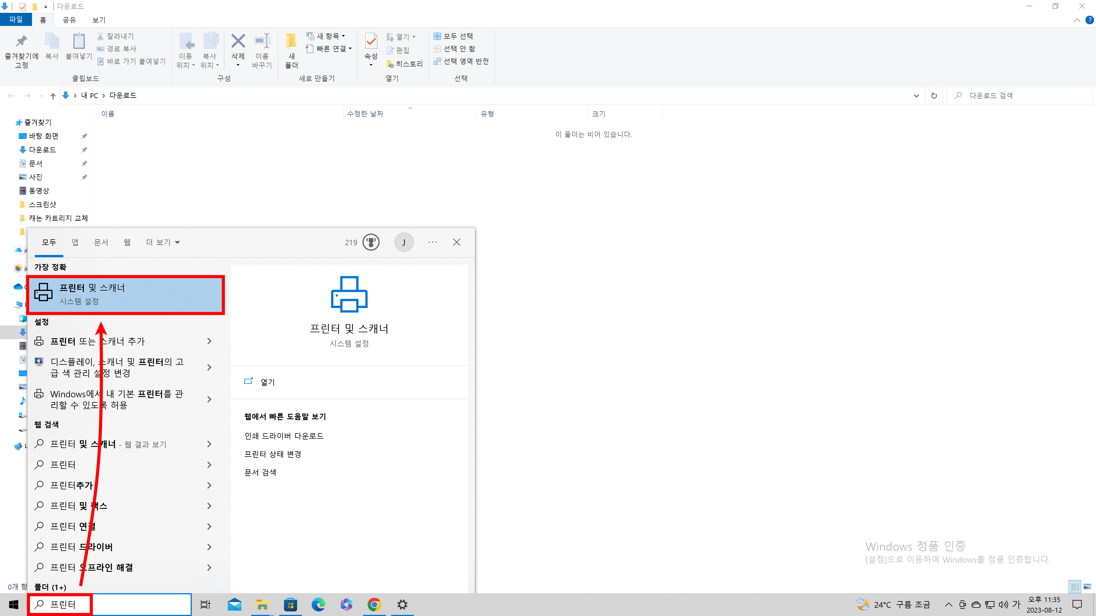 먼저 프린터 및 스캐너 설정으로  들어가셔야 합니다.