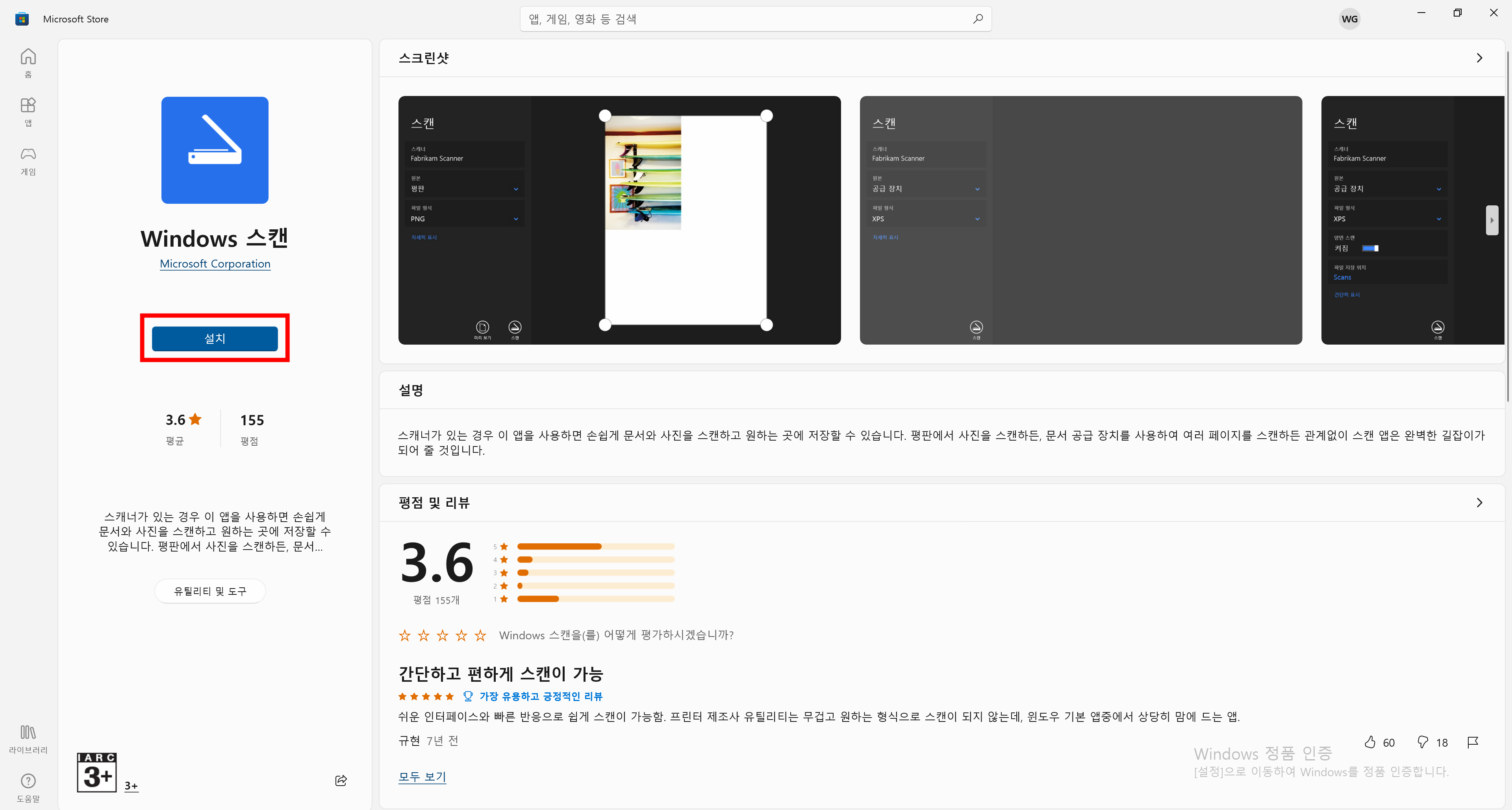 윈도우 스캔 설치