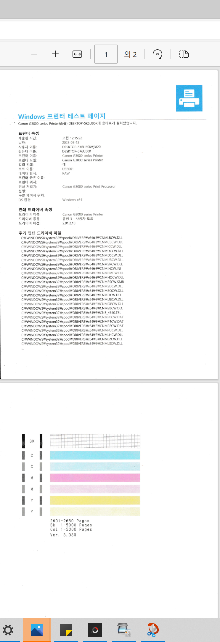 캐논 G3900 프린터 노즐 막힘 해결 및 카트리지 교체