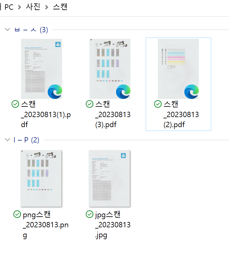 문서로 스캔을 했을 경우 스캔이 완료될 때마다 위의 문구가 뜨고 계속 스캔을 하면 PDF파일로 한 페이지에 저장이 되는 것을 확인했습니다. 물론 다른 좋은 프로그램도 있겠지만, 별도의 다운로드 없이 순기능으로만으로도 이 정도 기능을 한다는 게 간편하게 쓰기에는 좋은 거 같네요.