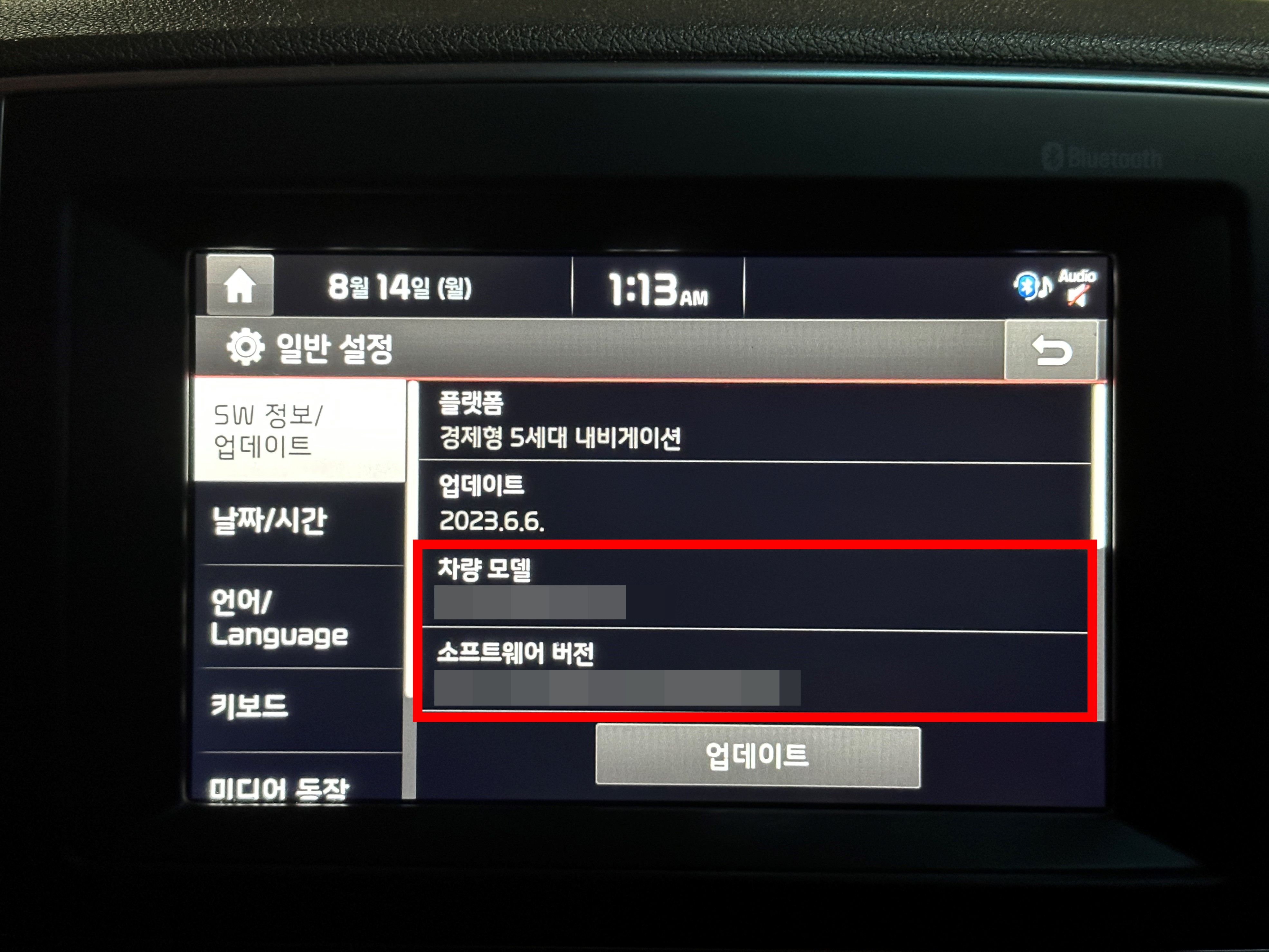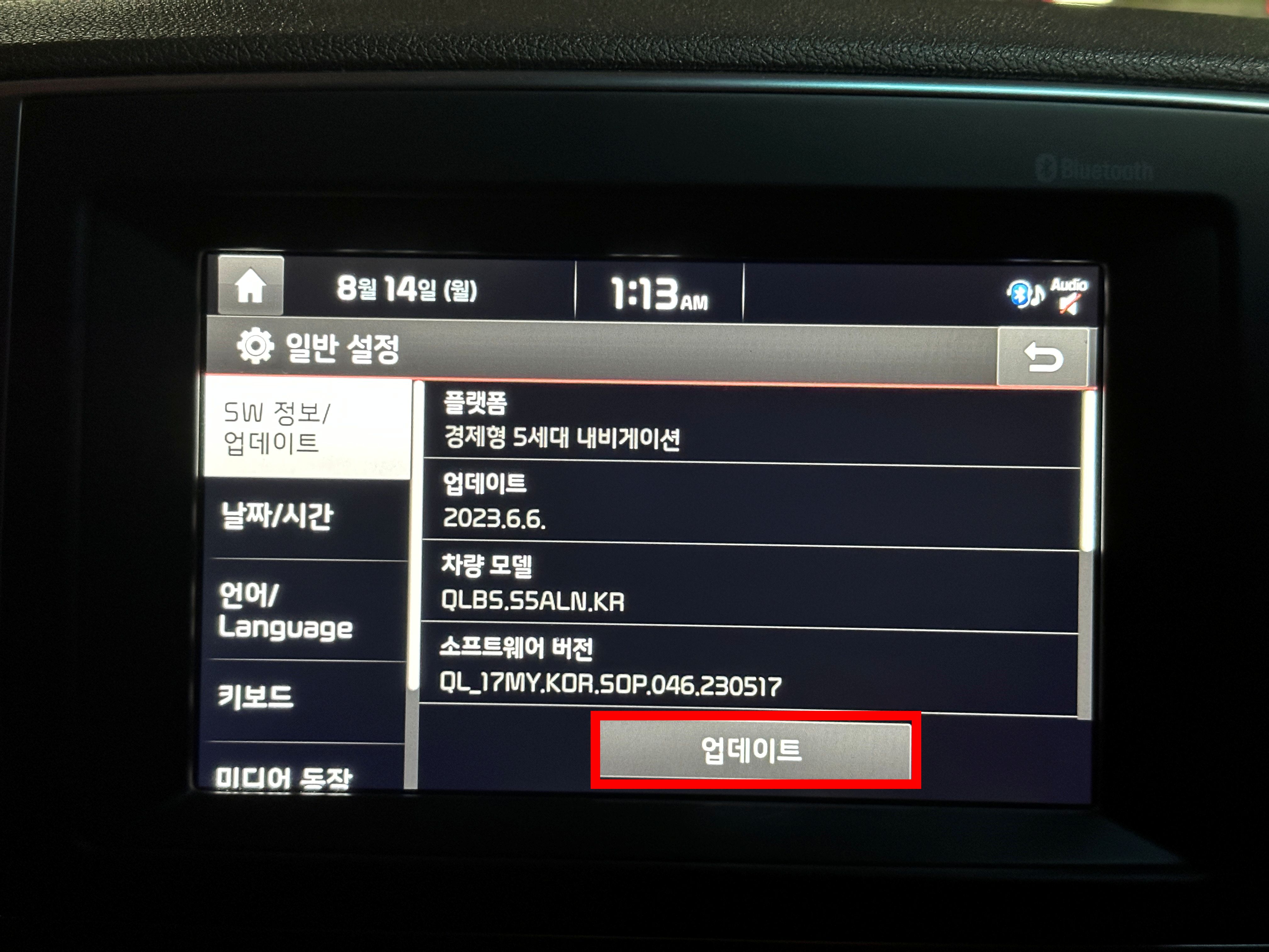설정으로 들어가셔서 업데이트 버튼 클릭하시면 이제 업데이트를 진행하게 됩니다. 시간은 5분 정도 걸린다 생각하시고 시동을 걸어 놓은 상태로 업데이트하시는 걸 추천드립니다.
