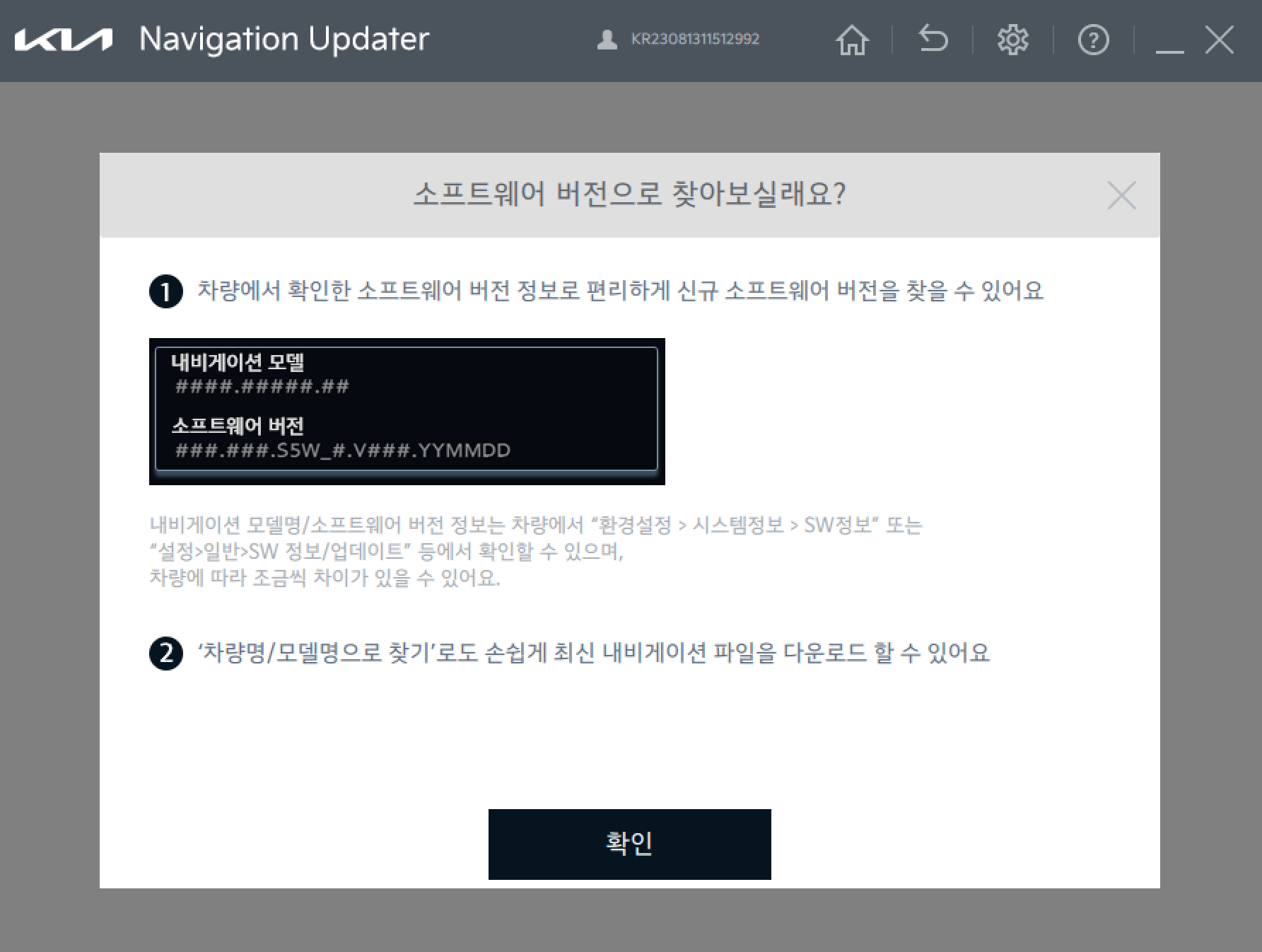 만약 내 차량이 어떤 건지 모르겠다 하시는 분은 차량 내비게이션 일반 설정에서 확인할 수 있으니까 업데이트하시기 전에 미리 알아두셨다가 업데이트할 때 '차량명/모델명으로 찾기'를 선택하셔서 본인 차량에 맞는 업데이트를 진행하시면 되겠습니다.