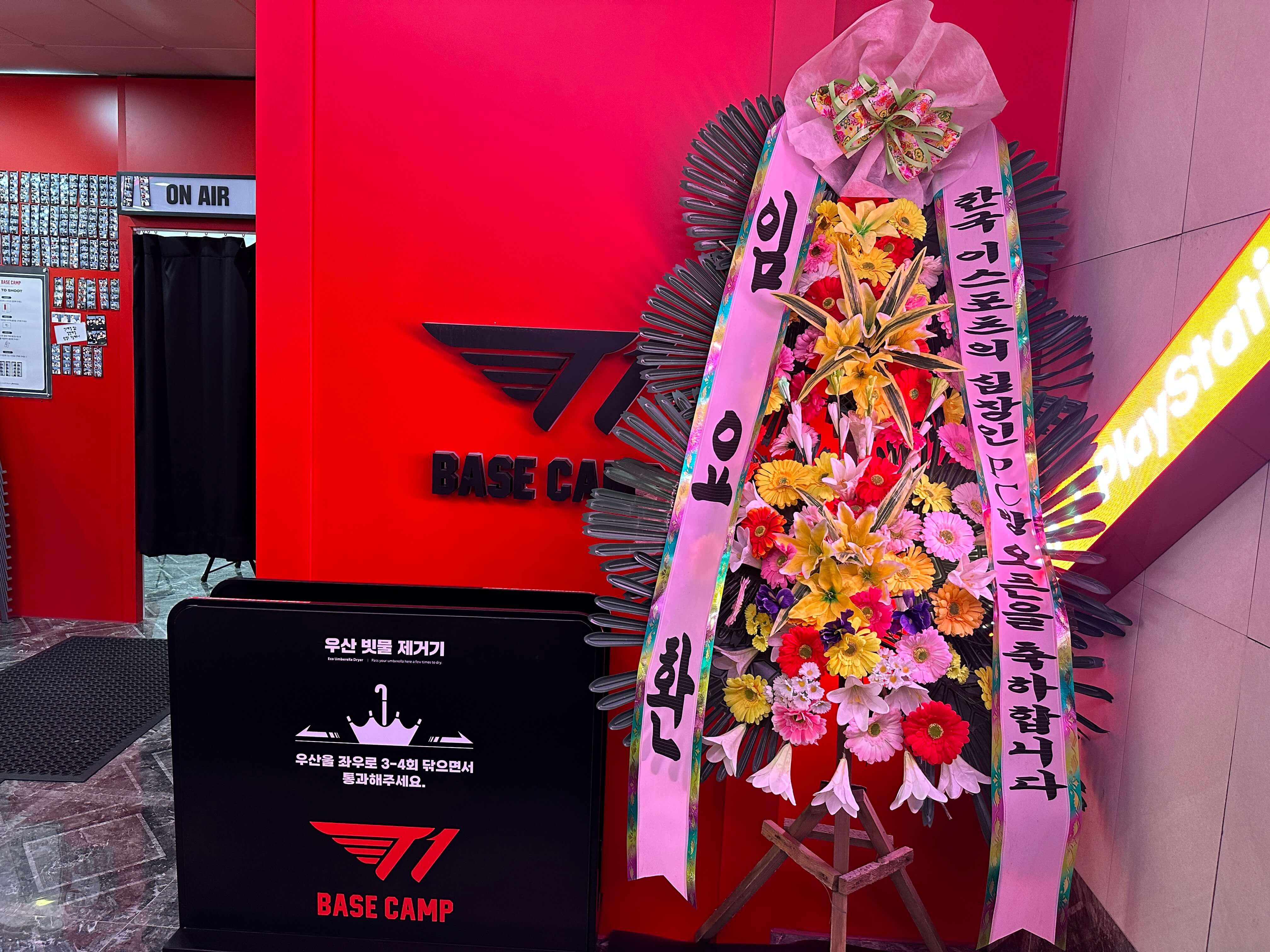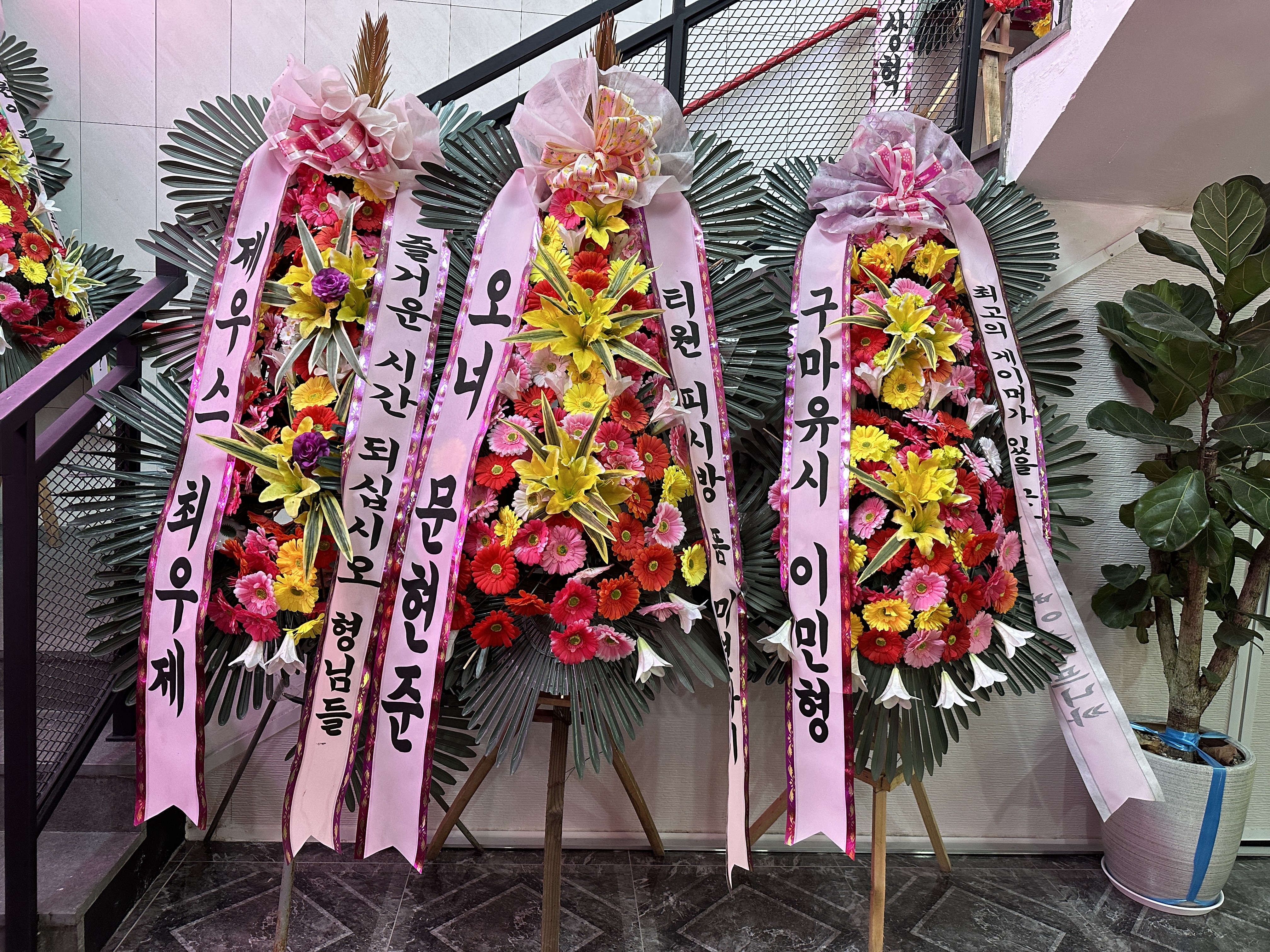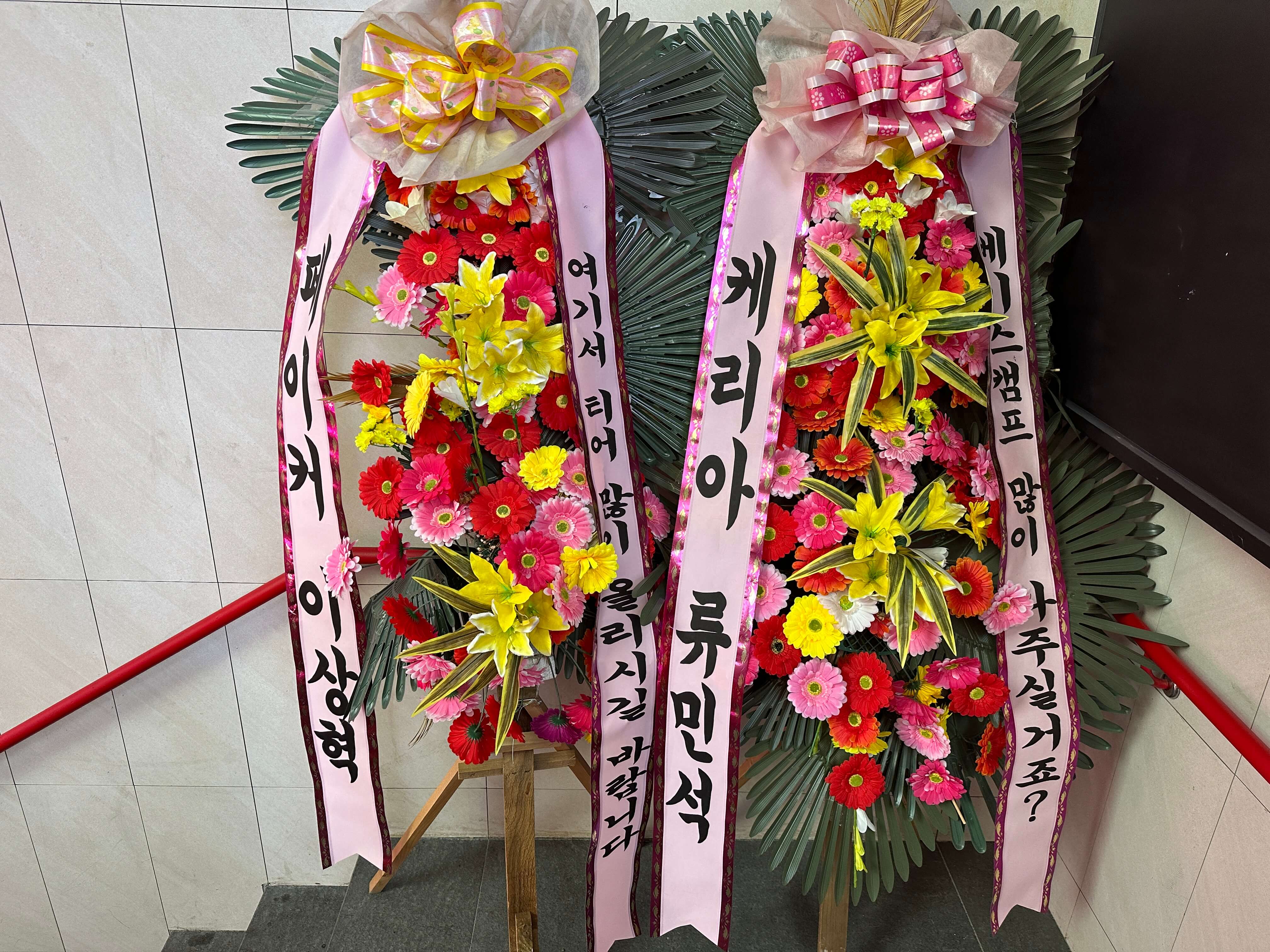 1층에서 지하 1층으로 내려가는 길에 선수들이 보낸 화환도 있었습니다.