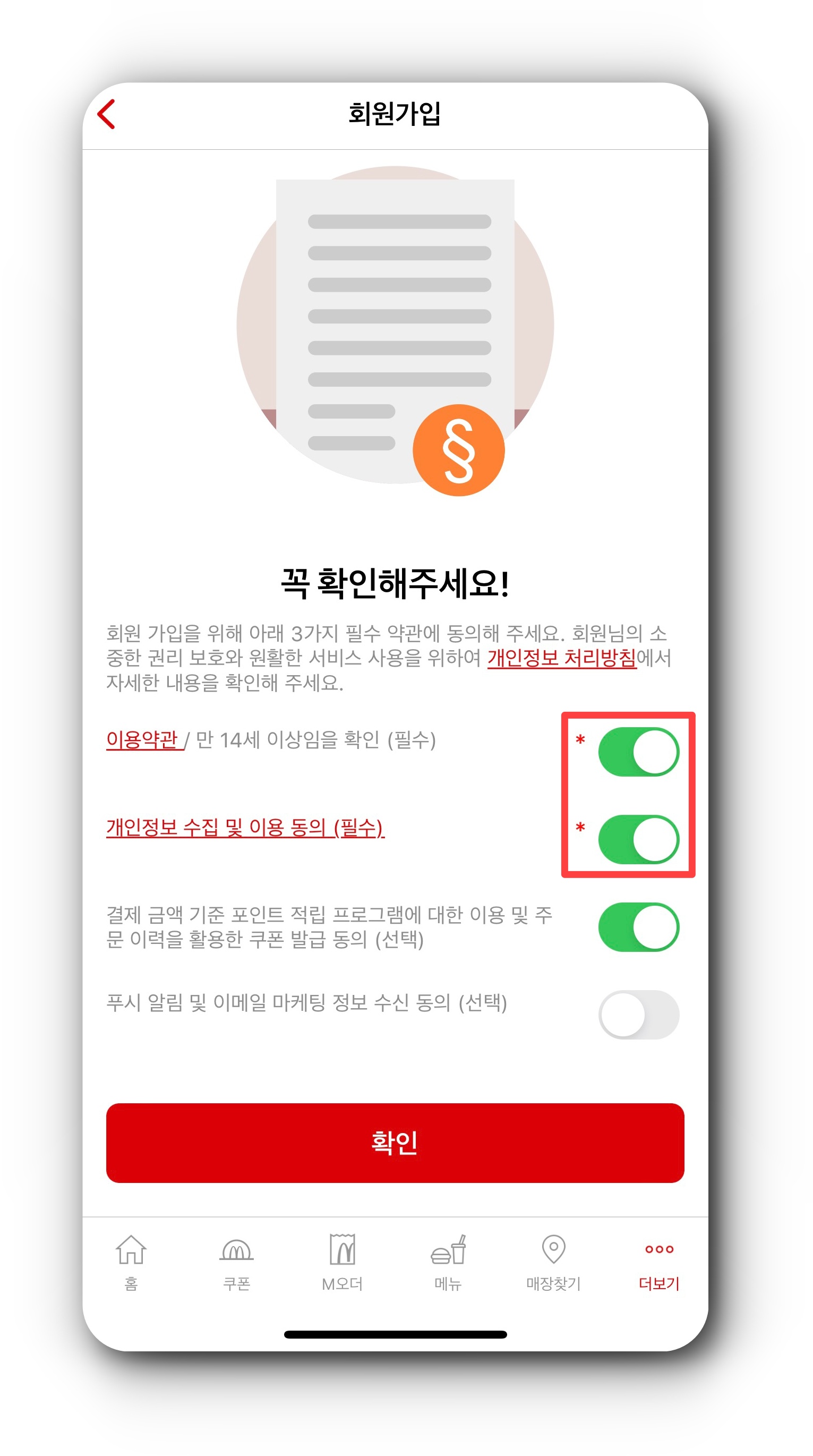 할인쿠폰을 사용하기 위해서는 회원가입을 하셔야 합니다. 어플을 다운 받고 회원가입을 하는 방법은 그리 어렵지 않습니다. 이용약관과 개인정보 수집 및 이용 동의 체크해주세요. 그리고 이름과 이메일 주소, 비밀번호와 휴대폰 번호를 입력하시고 성별과 생년월일은 선택사항이라서 체크 안하셔도 상관없습니다. 이메일 인증까지 하시면 이제 바로 사용하실 수 있게됩니다.