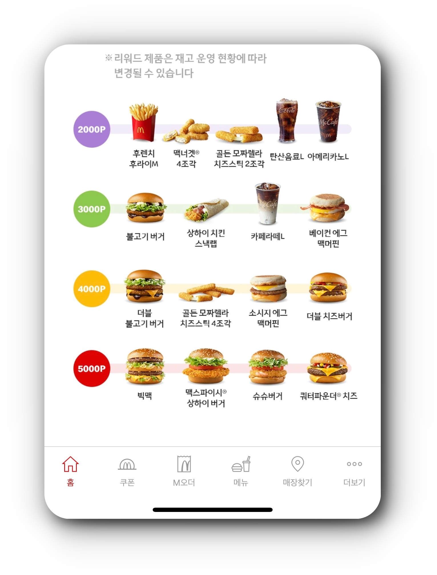 - 리워드 쿠폰에 지정된 메뉴 이외 다른 제품으로 교환 불가