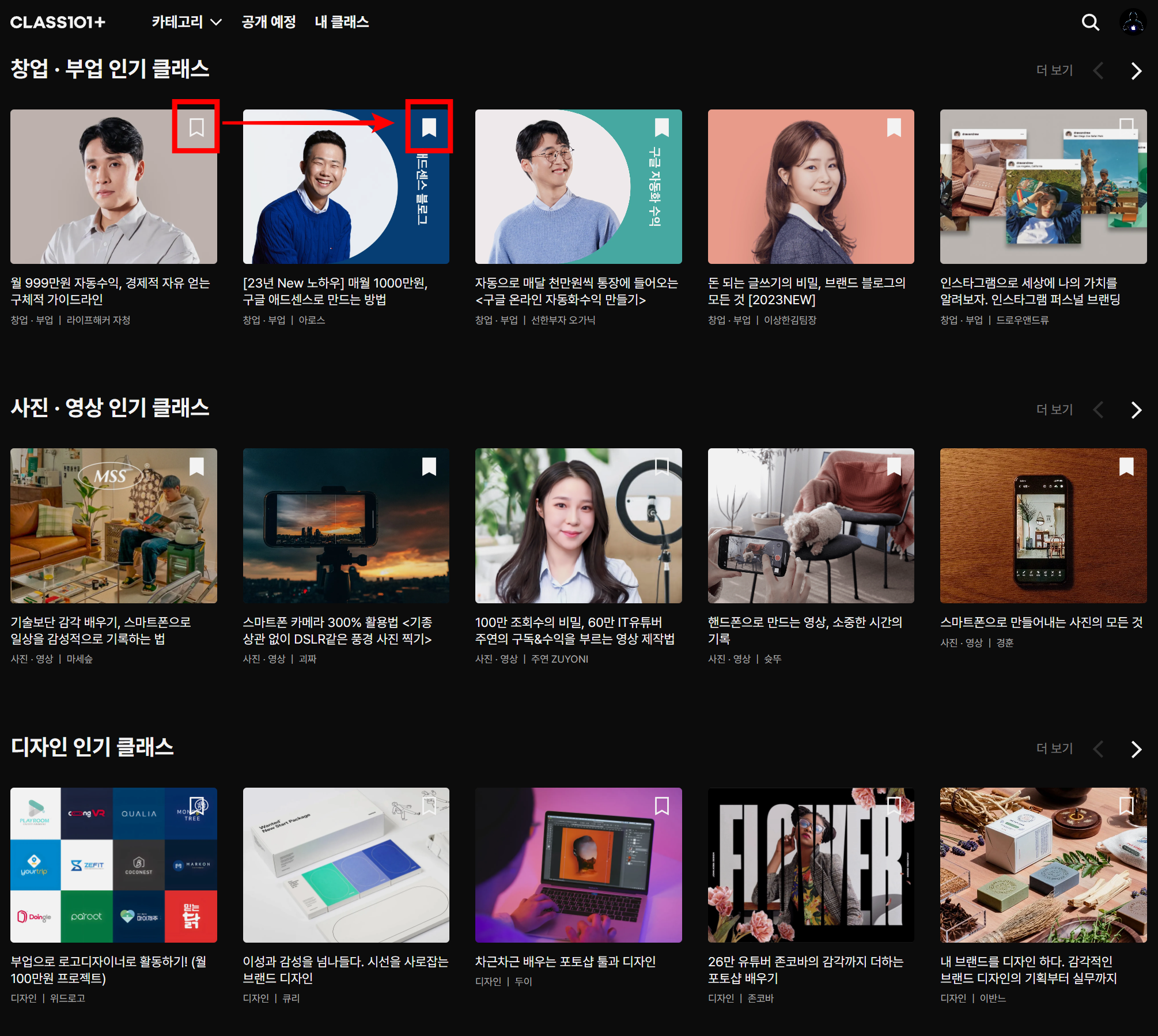 쉽게 말하자면 클래스 101안에 나의 즐겨찾기 리스트를 만드는 기능이 추가로 생겼다고 하는 거 같네요. 솔직히 내가 필요한 주제의 강의만 찾아보다 보니까 카테고리 기능에 대해서 관심이 없었는데 이번에 여러 가지 강의들을 보게 되면서 목록을 만들어서 모아 놓으면 편하겠다 생각이 들게 됐습니다.