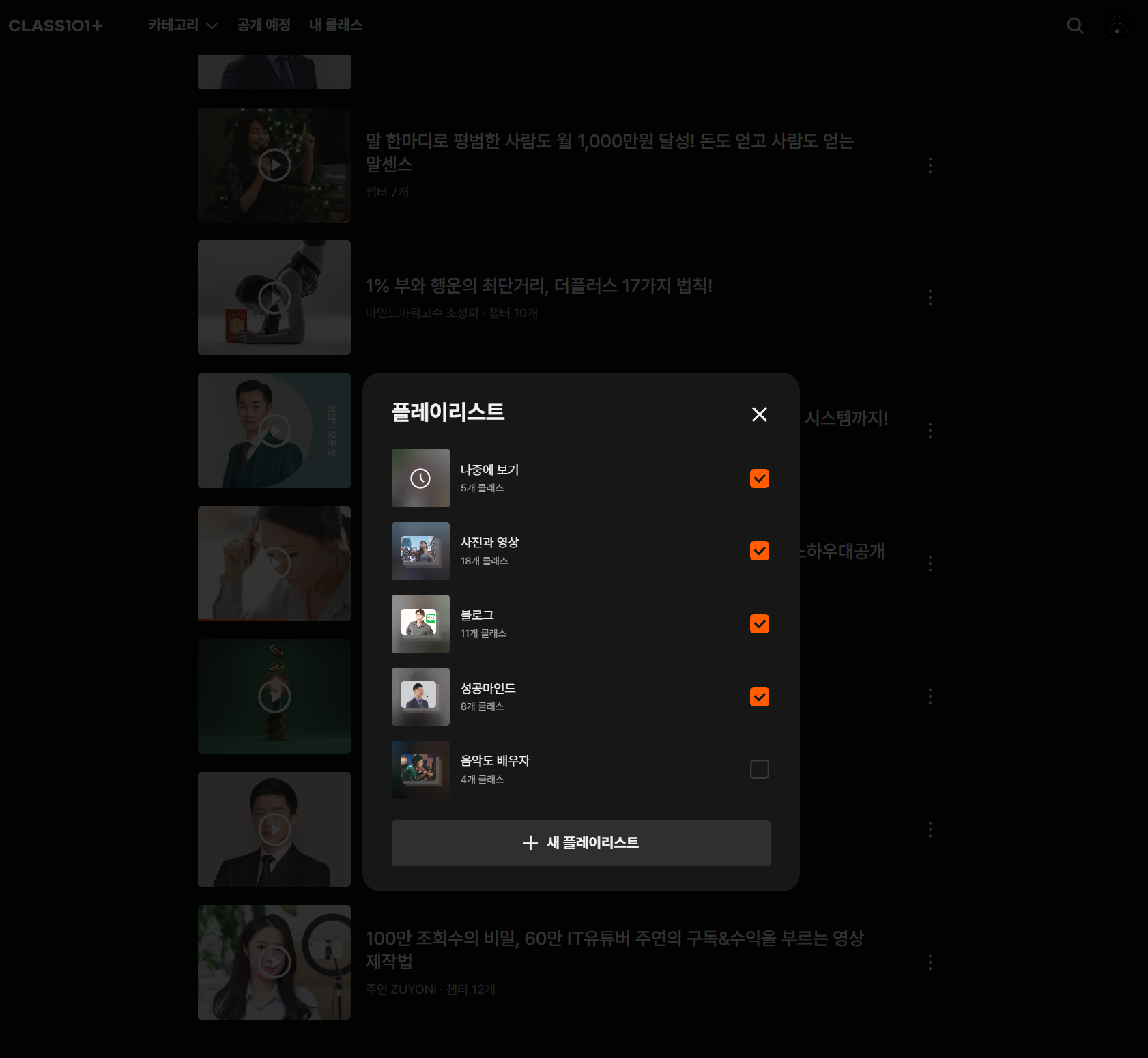 클래스 101+ 를 연간 구독하고 있으며 여러 강의들을 들어보며 개인의 발전을 위해서 잘 사용하고 있는 사람 중 한 명입니다. 이번에 나만의 플레이리스트를 만들 수 있는 신기능이 추가 됐다 하여 알아보려고 합니다.