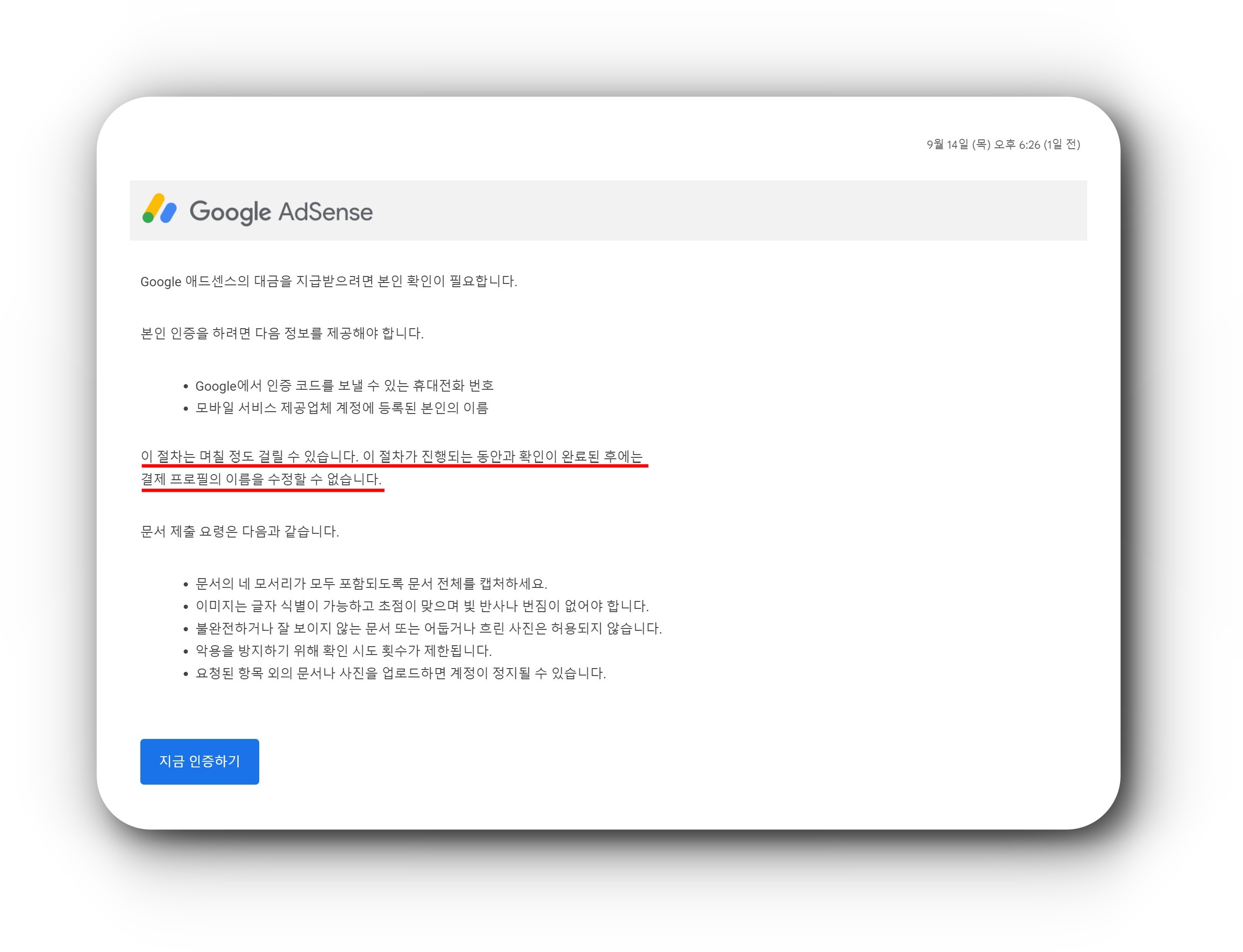 어제 구글에서 본인 확인 메일을 받았습니다. '어? 처음에 입력했을 텐데' 하며 일단 다시 인증하기를 시도했어요.
