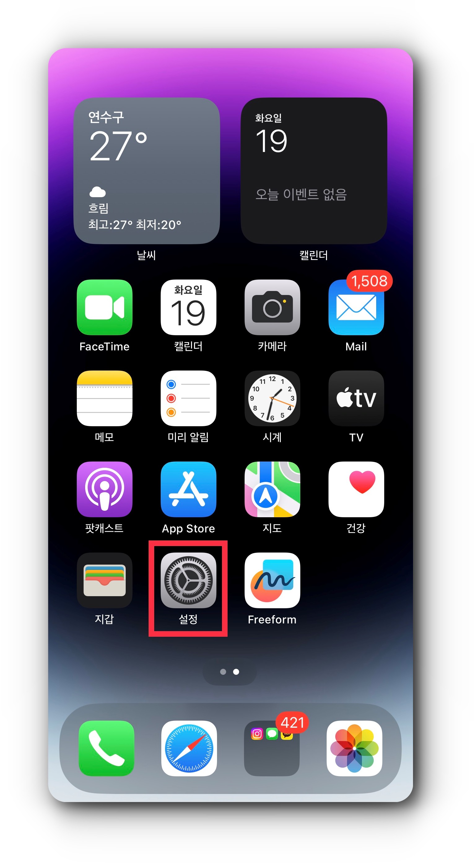 위 이미지들을 보셨지만, 설정 아이콘부터 시작해 단계적으로 클릭을 통해서 페이지 이동을 하지만 스팟라이트 기능을 사용하면 한 번에 이동할 수 있는 편리한 기능을 알려드리고자 합니다.