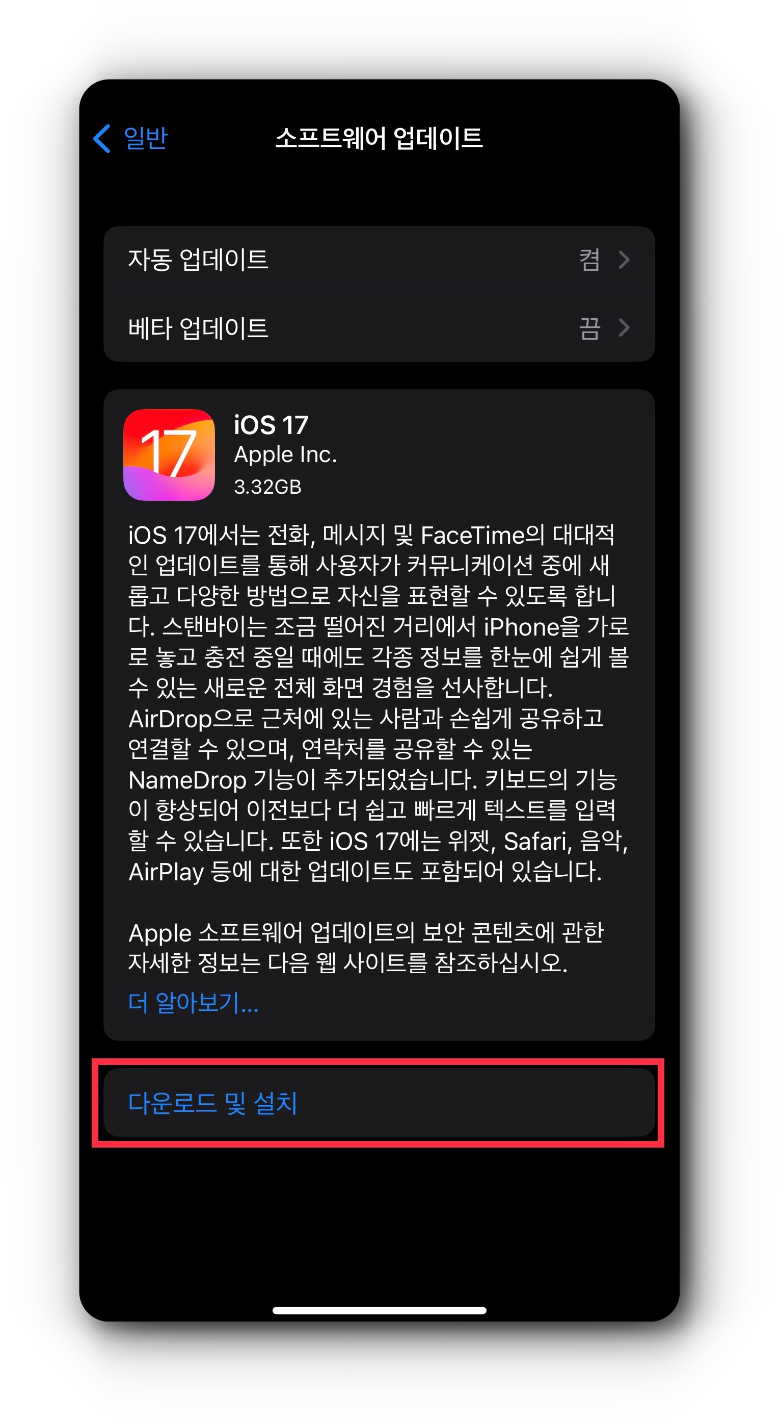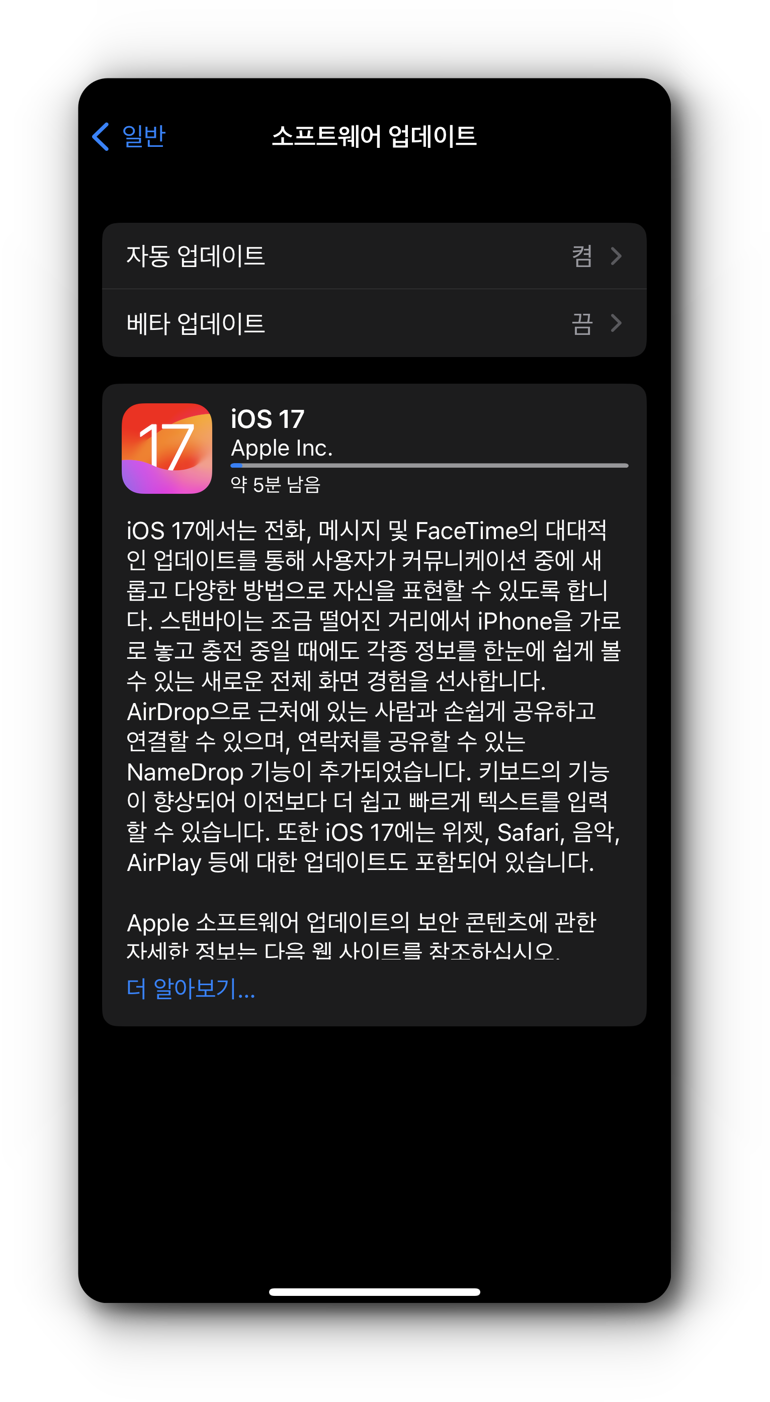 이렇게 IOS 17 업데이트하는 방법에 대해서 알아봤습니다. 업데이트를 해도 초반에는 오류 나는 경우가 있어서 업그레이드를 자주 해야 할 수도 있으니 한번 알아두시고 앞으로 이 방법으로 바로바로 업데이트해 주시면 좋을 거 같아요.