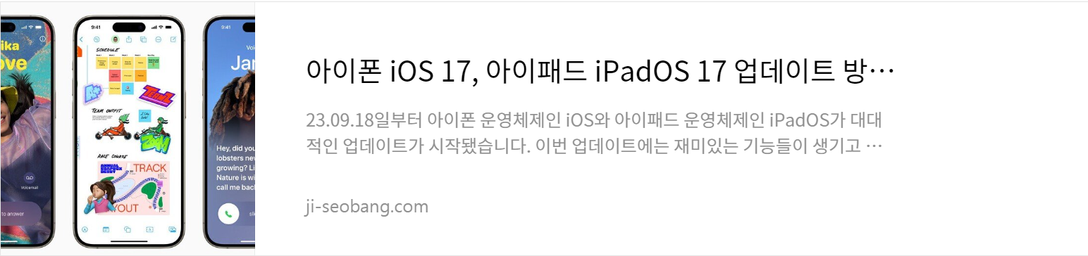 | 아이폰 iOS 17, 아이패드 iPadOS 17 업데이트 방법과 Spotlight 활용하기 (0) | 2023.09.20 |