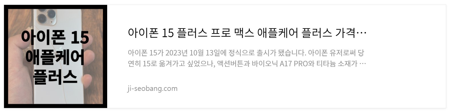 | 아이폰 15 플러스 프로 맥스 애플케어 플러스 가격 정리 (0) | 2023.10.16 |