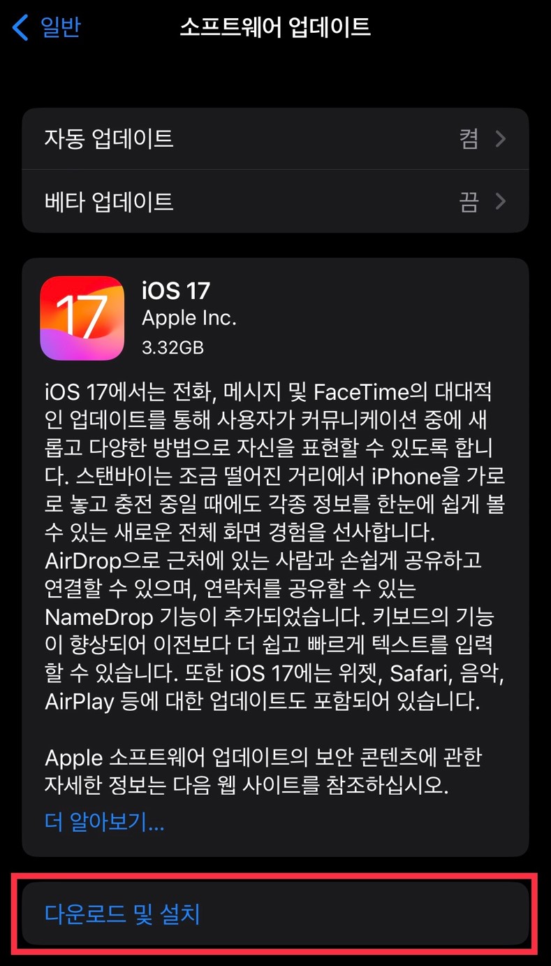 [설정] - [일반] - [소프트웨어 업데이트] -