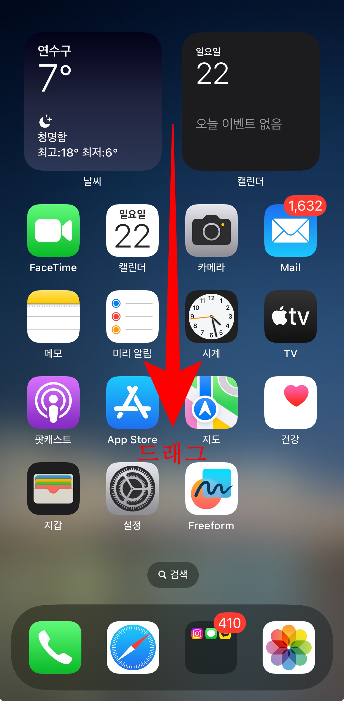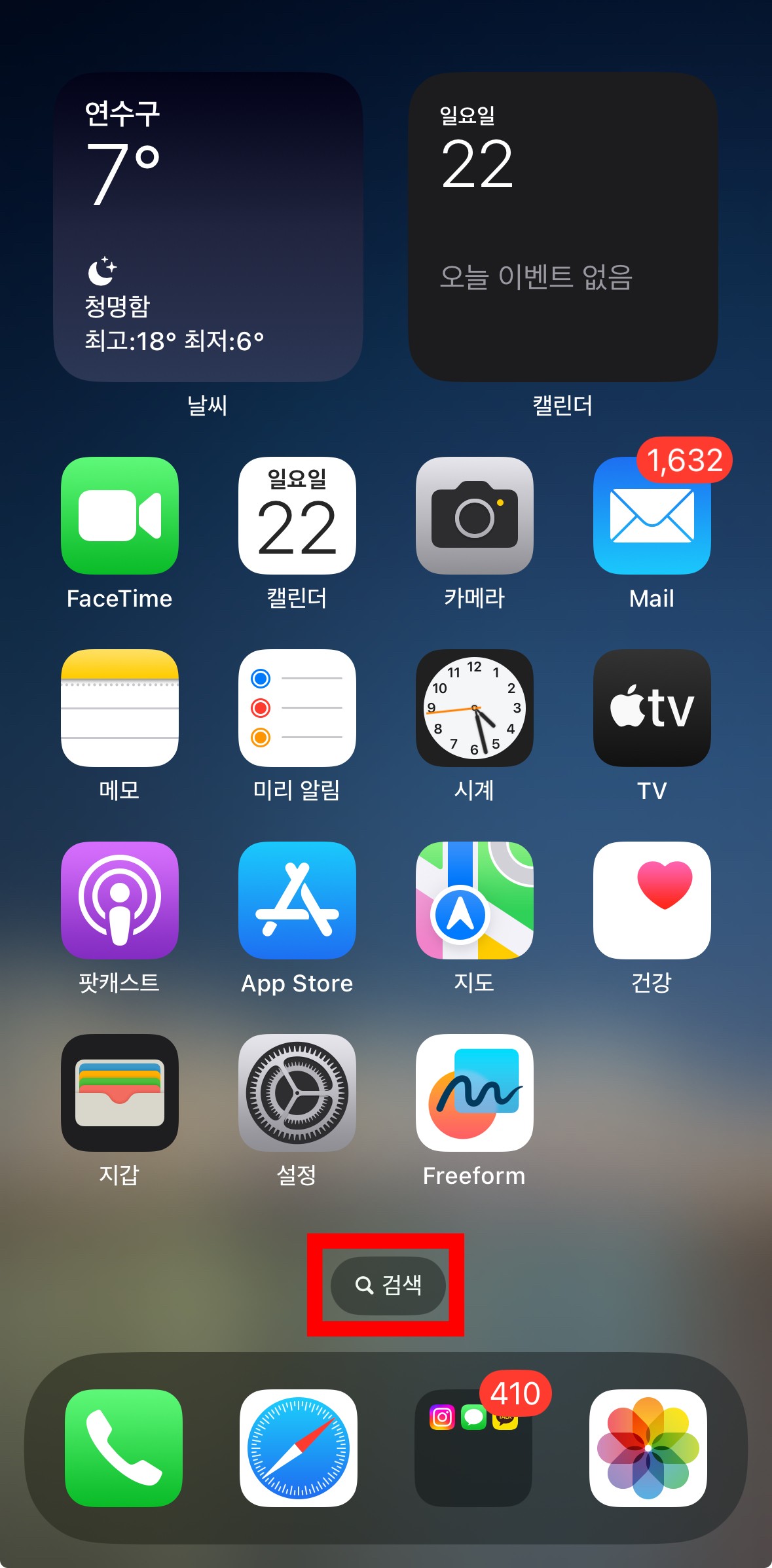 최신 아이폰에는 위 이미지처럼 검색 버튼이
