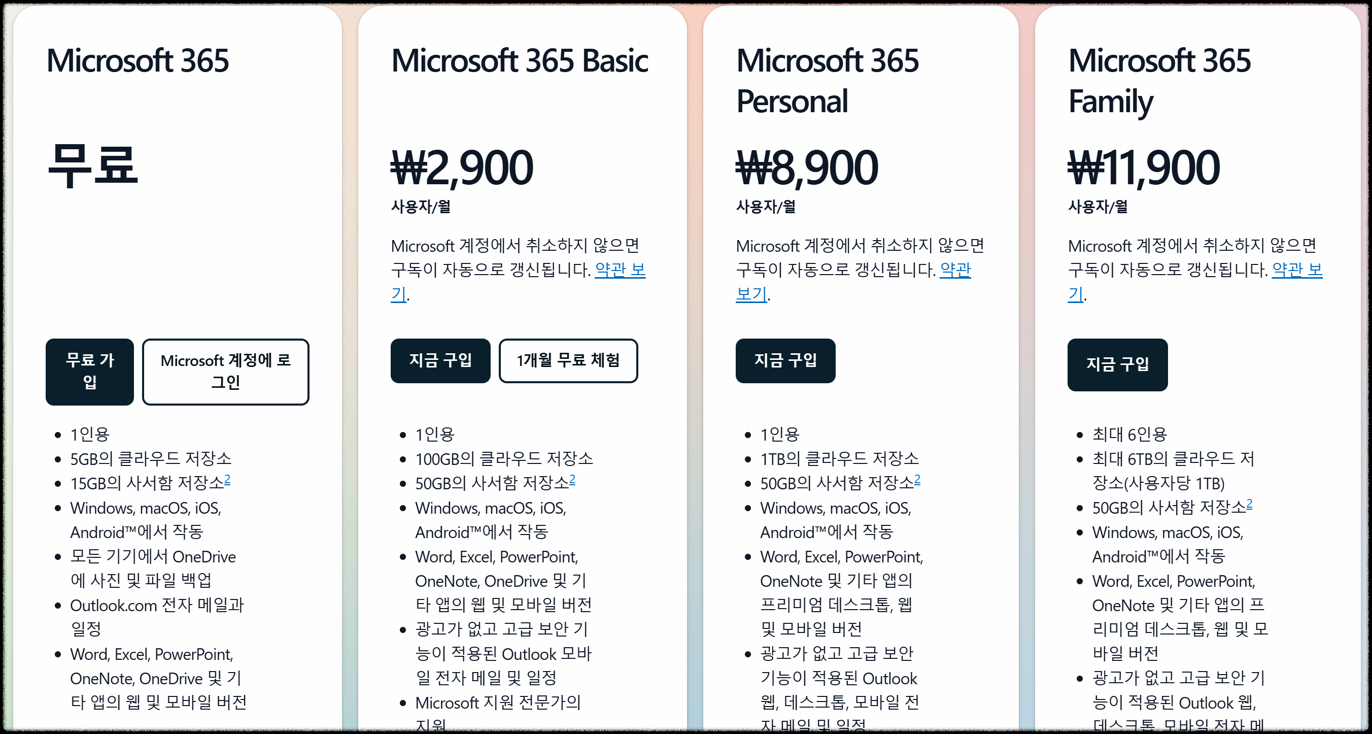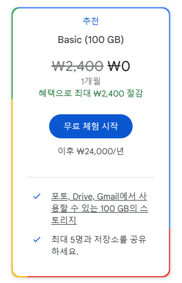 - 베이직 : 100GB - 월 2,400원 (연 24,000원)