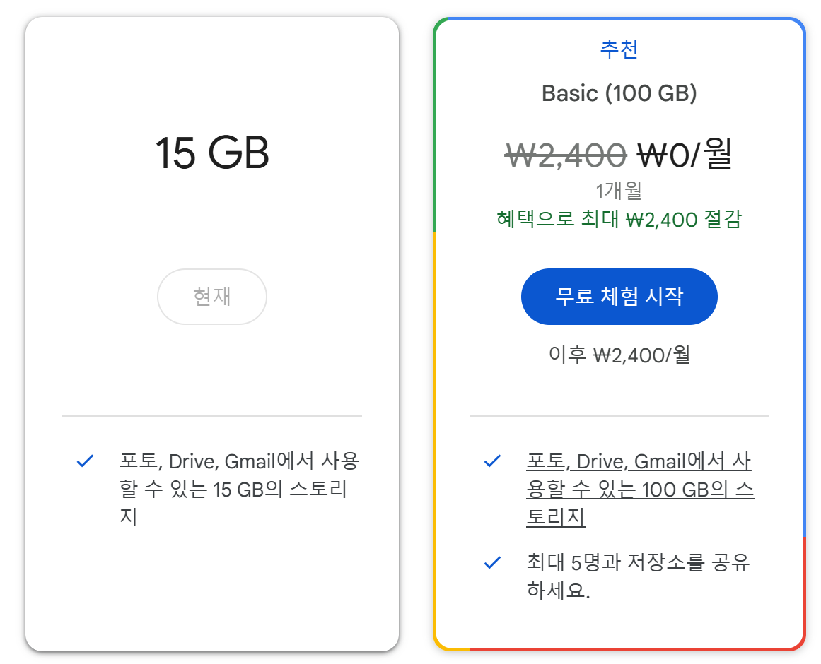 특히, 구글 드라이브는 구글 계정만 있으면 무료로 사용할 수 있는 15GB의 용량을 제공해요.