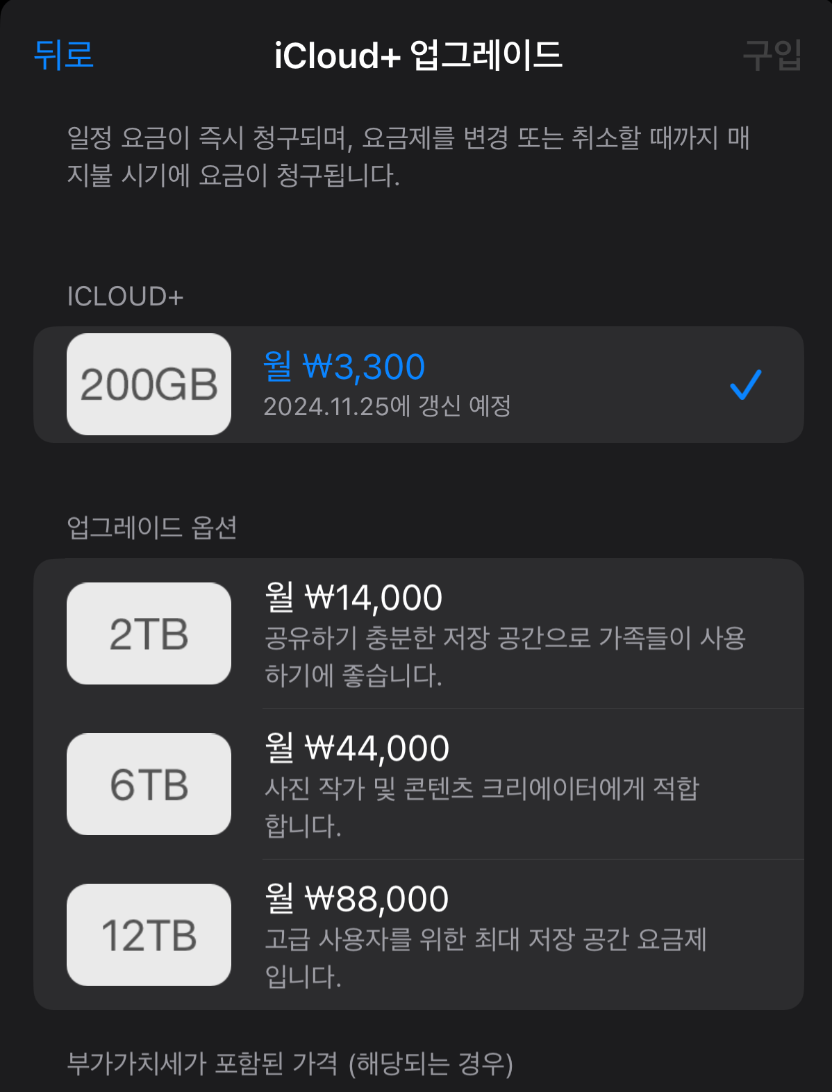 - 프리미엄 : 2TB - 월 11,900원 (연 119,000원)