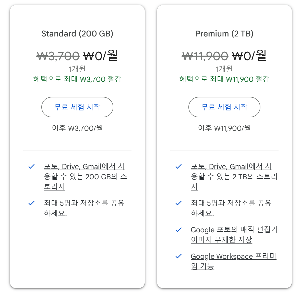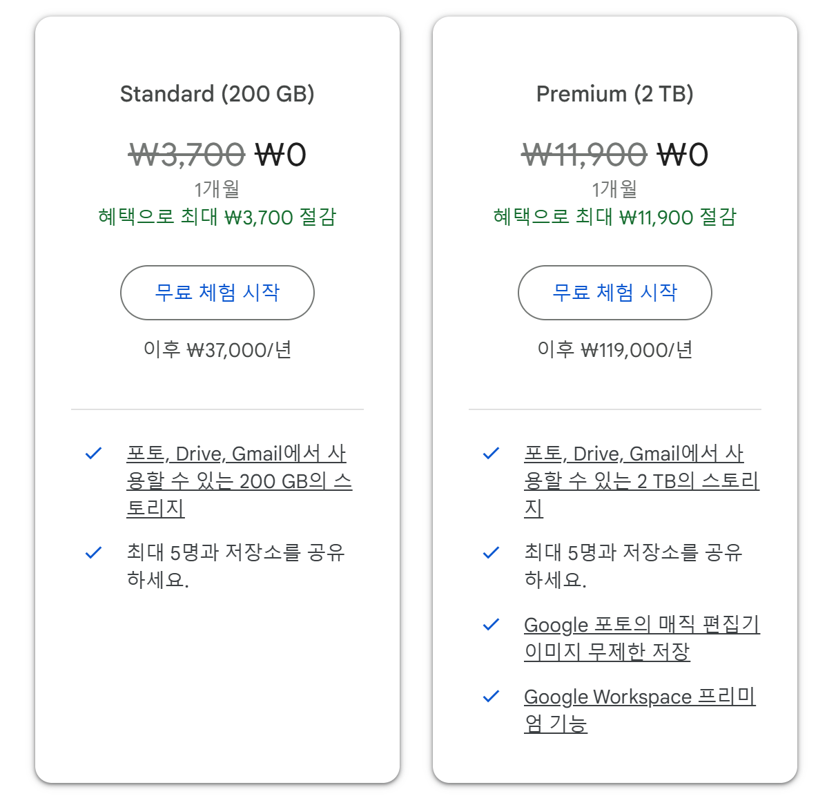 - 스탠다드 : 200GB - 월 3,700원 (연 37,000원)
