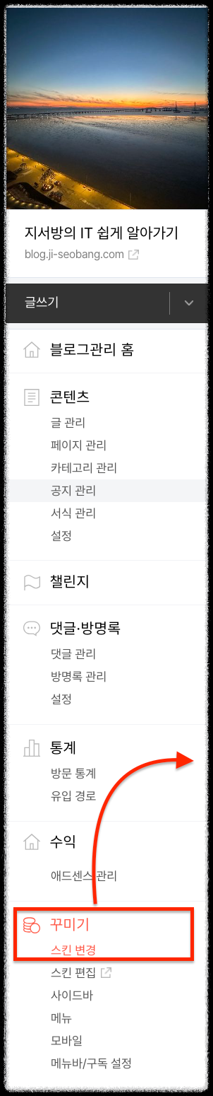 오랜만에 티스토리 블로그를 하다 보니 홈 화면의 스킨이 마음에 안 들더라고요. 요즘 PC보다 모바일을 많이 한다고는 하지만 생각보다 제 블로그는 PC로 보는 유저가 많다 보니 사이드바를 활용할 수가 없다는 게 점이 아쉬워서 북클럽 스킨으로 변경하게 되었습니다.