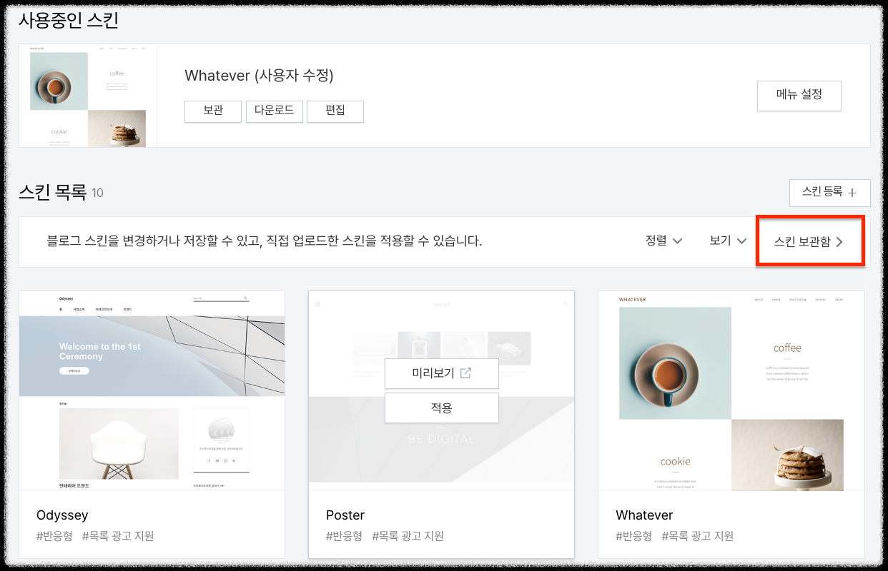 티스토리 스킨 확인